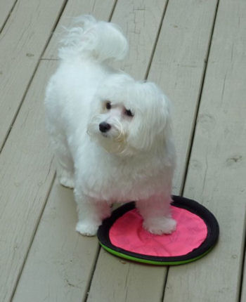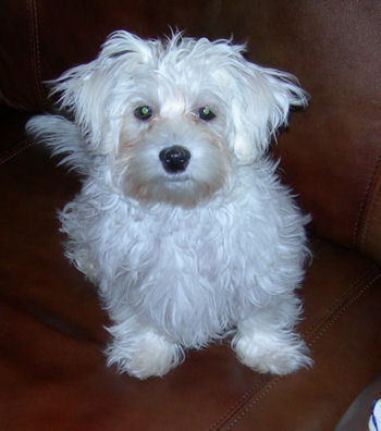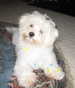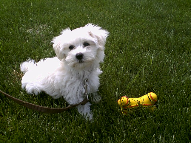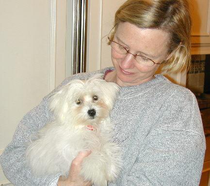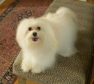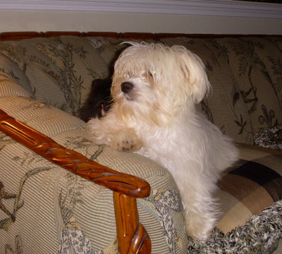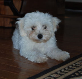 I hope all is going well with you and your family! We are fine and are really busy. I had forgotten how much time it takes with a new puppy. Gio is beautiful and so much fun. Every where I go, people talk about how beautiful he is. I must say that he is a "mama's boy". He travels very well and has slept all through the night every night. He even slept all night long the first we got him(the vet said he was special). He wobbled around just like a little puppy for a day or two and then "boom", he flipped a switch and he was like a lightening bolt trying to catch him. I have never seen a little dog that can run so fast! He loves everyone he sees. He goes to the vet next Tuesday to get his last shot and he starts his puppy training at the end of this month. He is doing OK with his potty training but of course he still has accidents. My husband loves to watch him dance on his hind legs. We love him so much and thank you so much for raising such wonderful dogs! I have enclosed a picture of him that was taken yesterday before his first real haircut and some taken today. It is hard to get him to be still long enough to get a good pic of him. I will send updates as he gets older. Again I say thanks, for my wonderful baby!